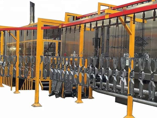 涂装流水线的七大组成部分主要包括:前处理设备、喷粉系统、喷漆设备、烘炉、热源系统、电控系统、悬挂输送链等。